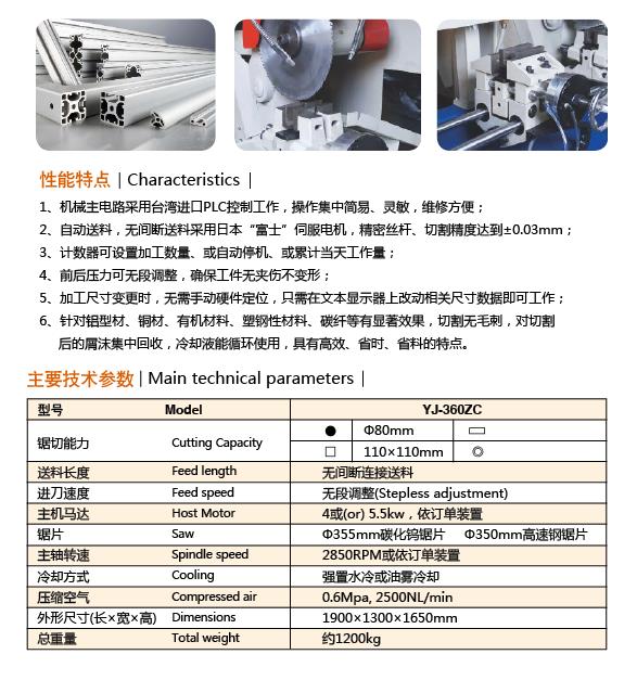 YJ-360ZC 自動(dòng)數(shù)控銅鋁切割機(jī)